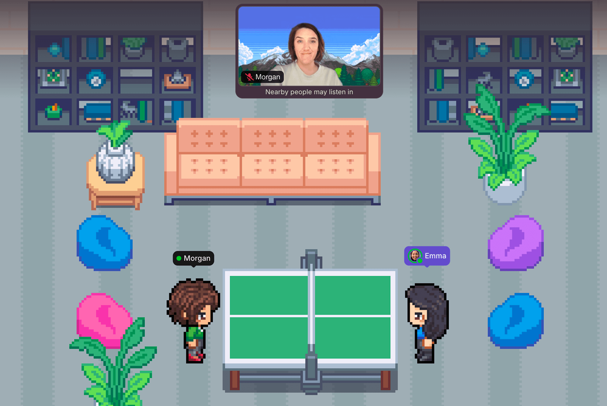5-minute games are great, but they're short-lived. Gather gives you a virtual office where your remote team can move around and talk naturally with one another before, during, and after the meeting ends.